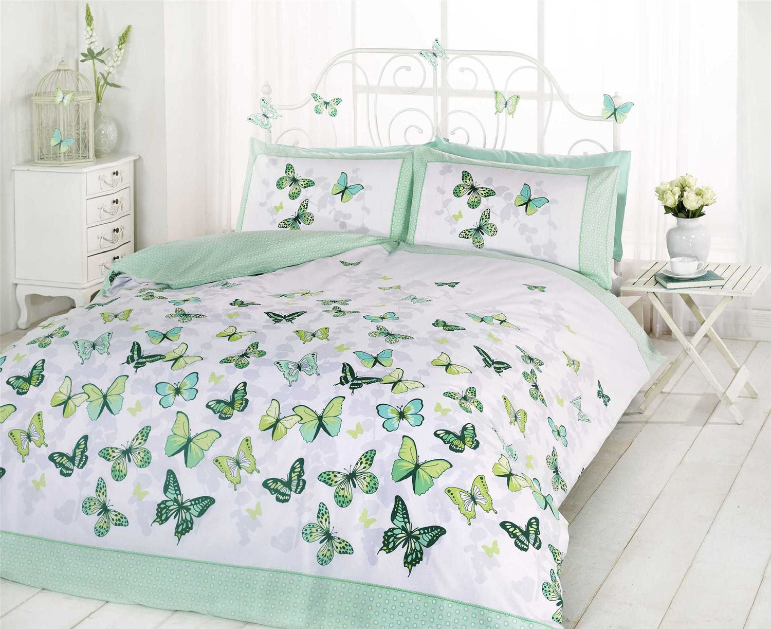 Butterflies flutter by on this modern themed bedding. Perfect for any nature lover. This reversible bed set has two fashionable designs for the price of one.