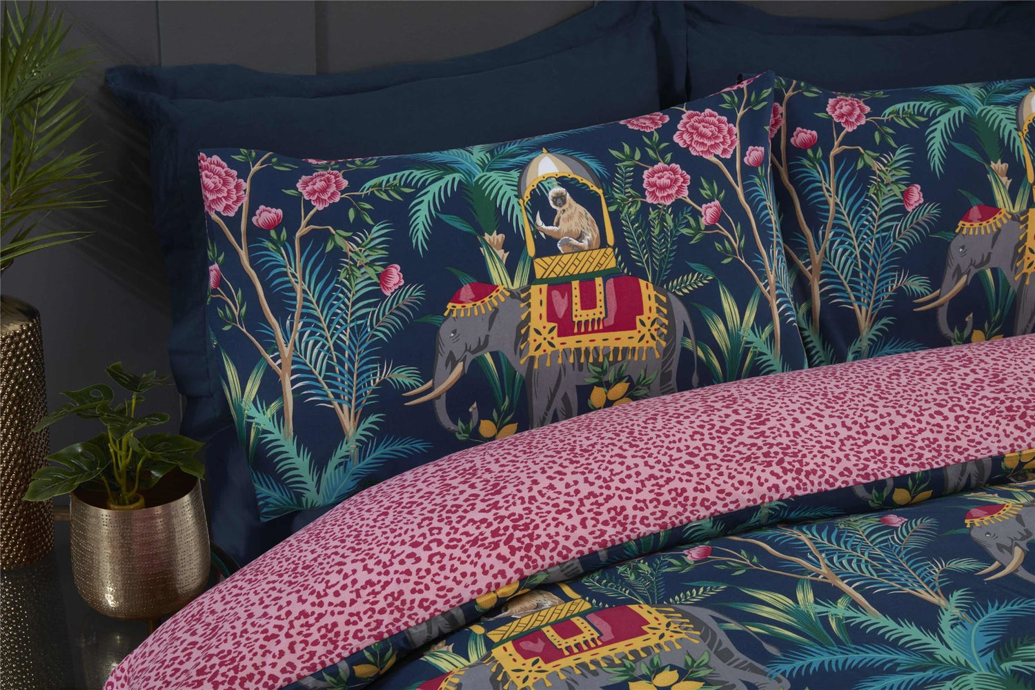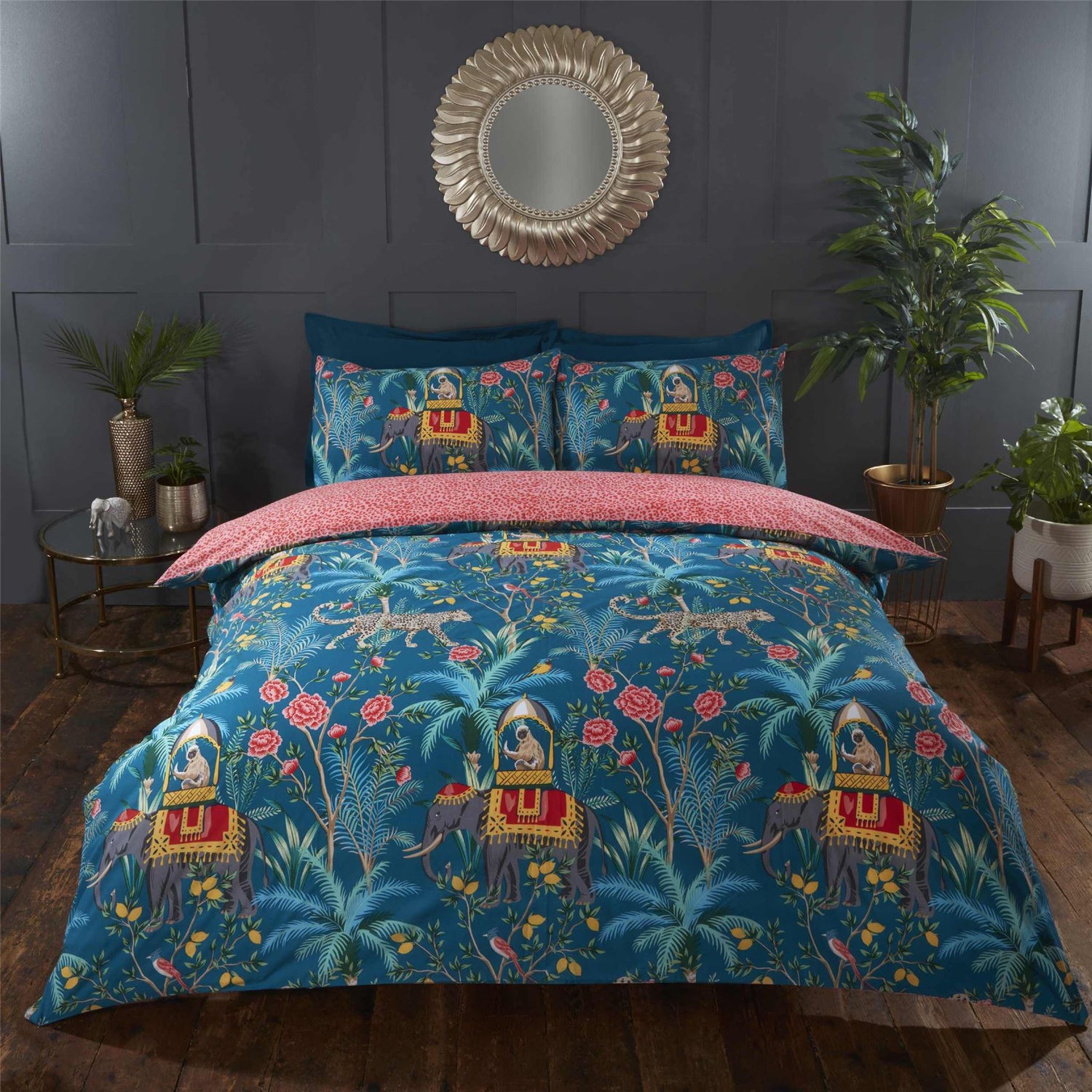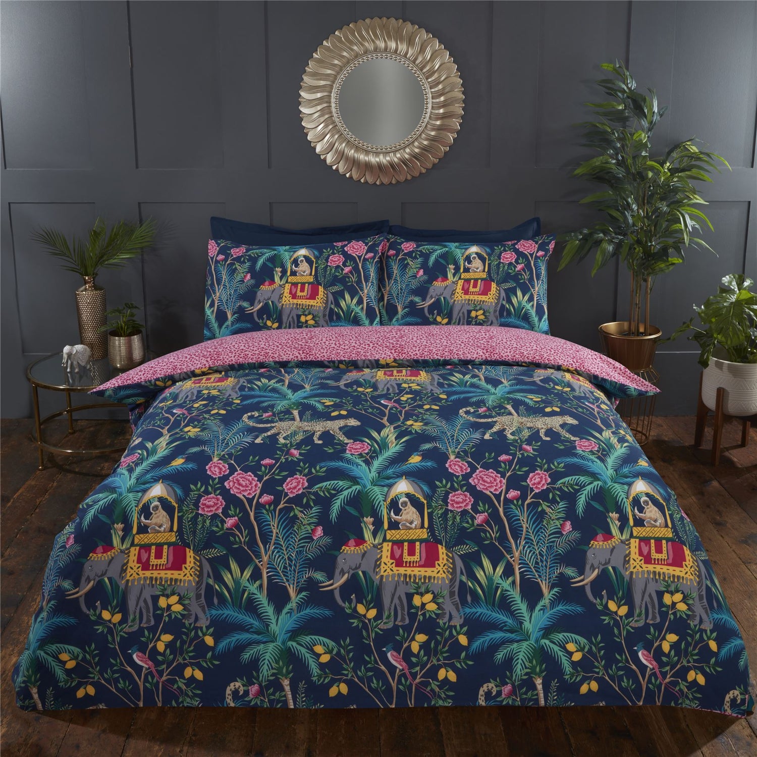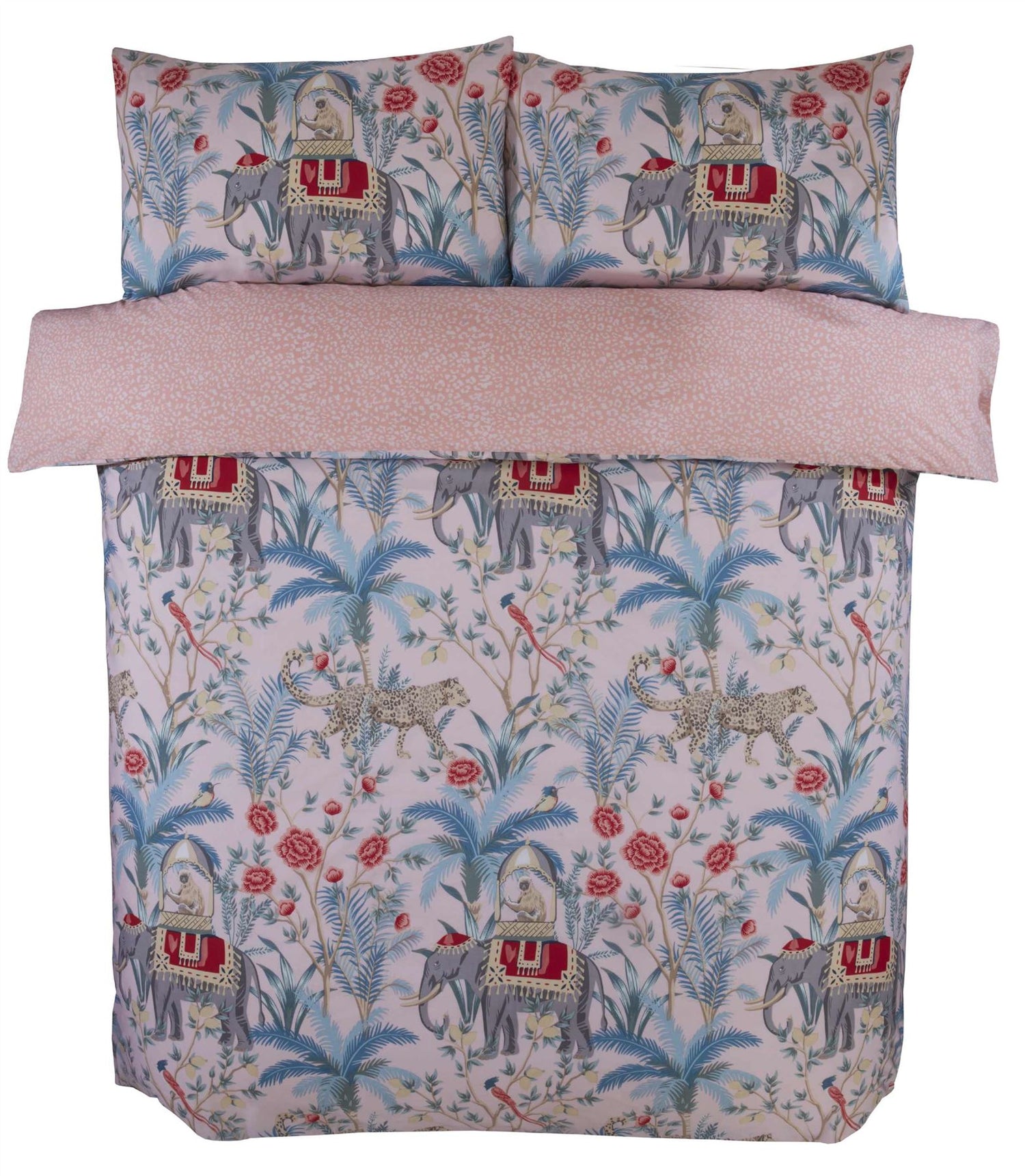 Stunning duvet set featuring a vibrant and exotic print of leopards, elephants, monkeys amongst palm leaves and exotic flowers will work as an on-trend finishing touch to any bedroom. It is also fully reversible with a tonal animal print reverse.