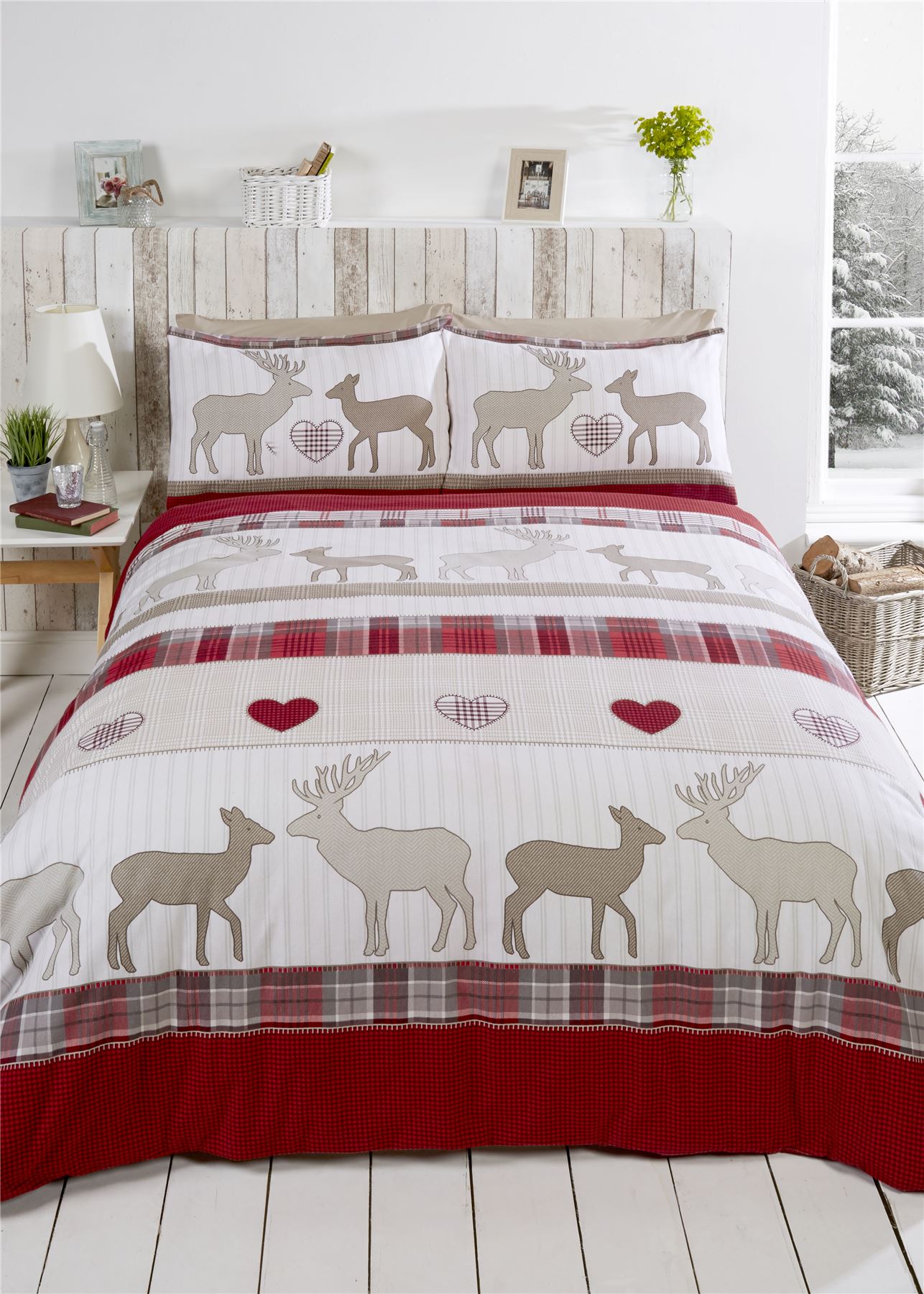 This winter bedding design features on trend stags mixed with traditional tartans. This duvet cover set is fully reversible and is printed on 100% brushed cotton.