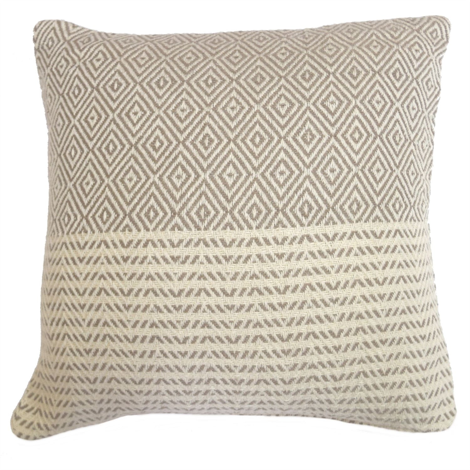 Soft woven geometric cushion in muted palette the perfect accessory for your sofa or bed.