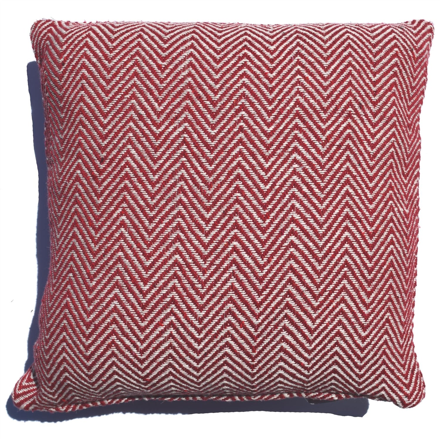 Soft woven herringbone cushion in muted tones measuring 43x43cm, perfect for sofa or bed decor