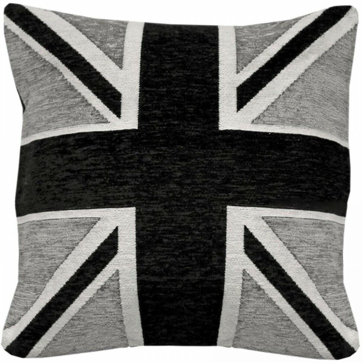 Quirky British-themed cushion featuring the Union Jack in textured chenille, perfect for cosy spaces