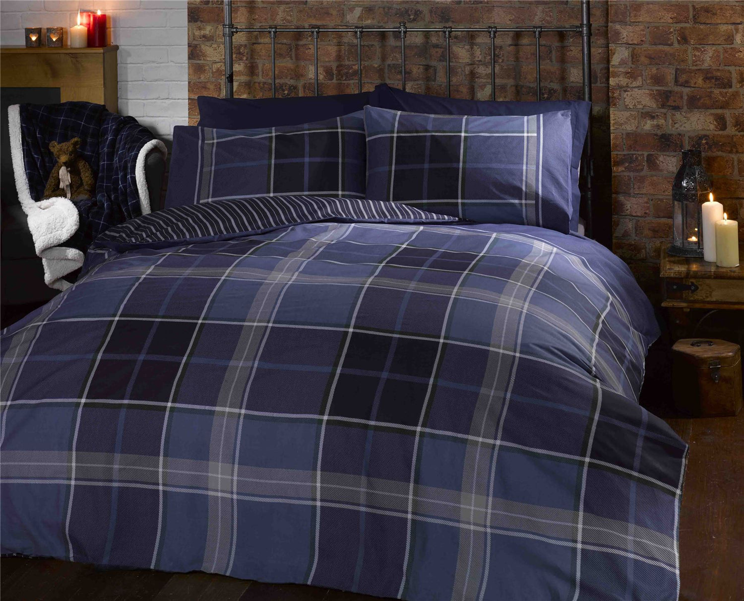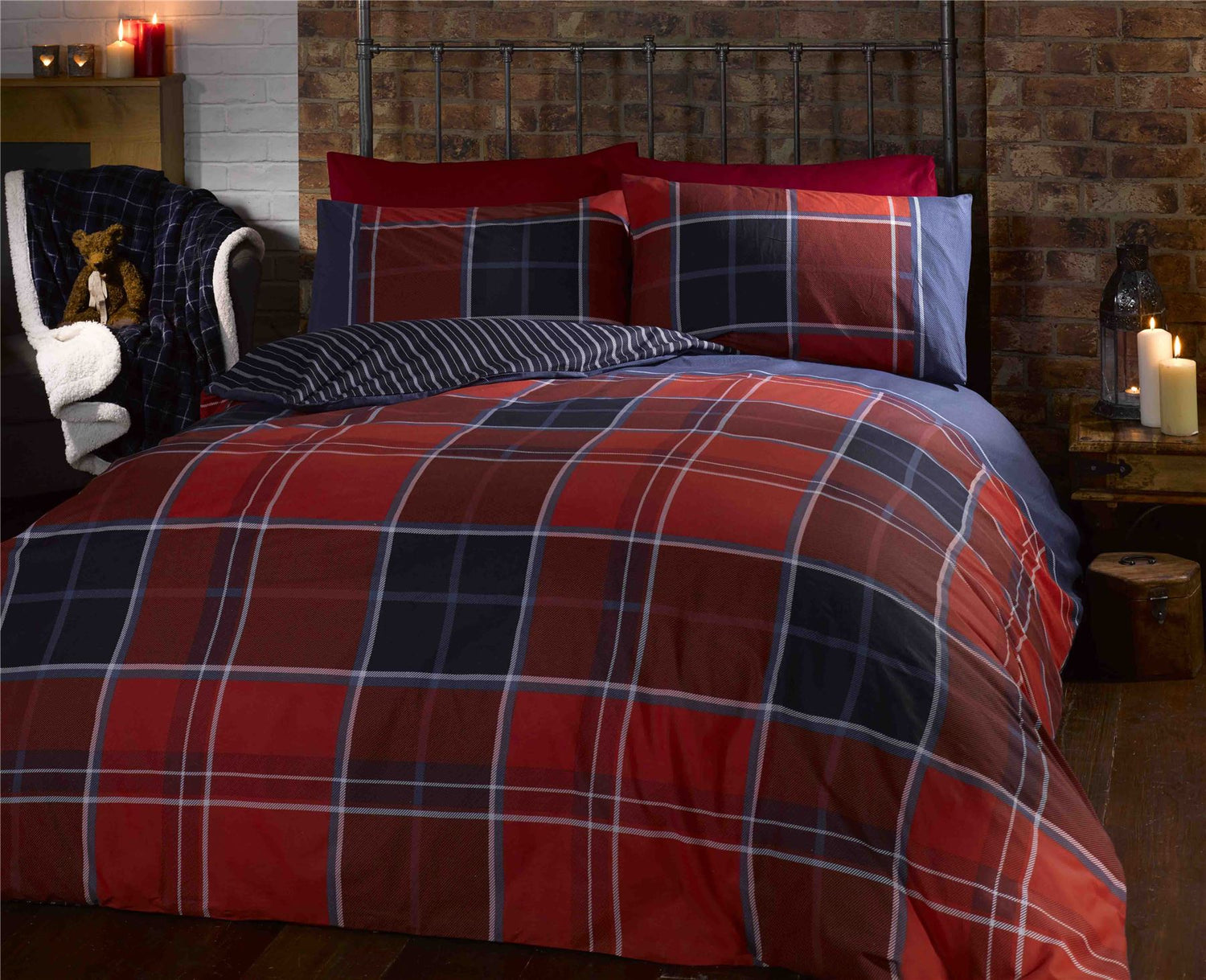 This classic tartan duvet cover set features a charming checked pattern and contrasting cuff detail with a unique striped reverse design.