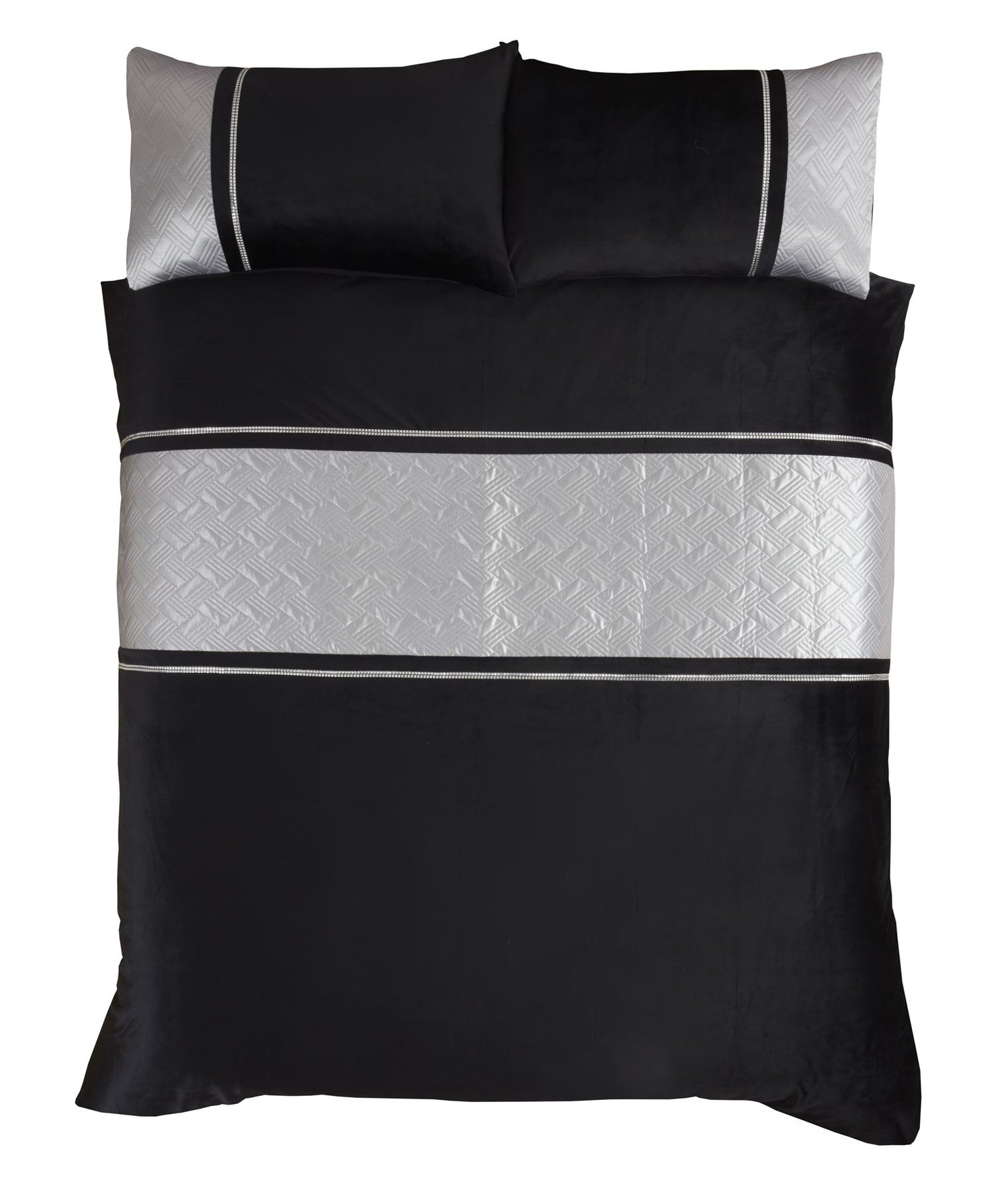 Glamorous black velvet Capri duvet cover with gold geometric band and diamante trim