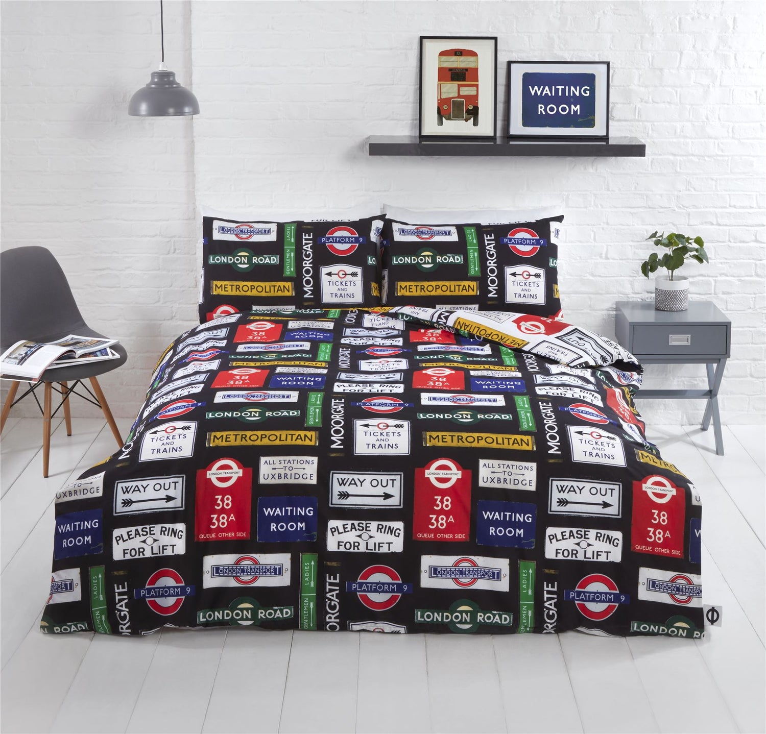 Add a touch of the London city life to your room with this TfL London signs duvet cover set. Featuring retro signs from all over the London Underground, this set will bring the daily life in London experience to your bedroom. This set comes with a black background with the reverse showing the same signs on a white background. Official TfL licensed product.