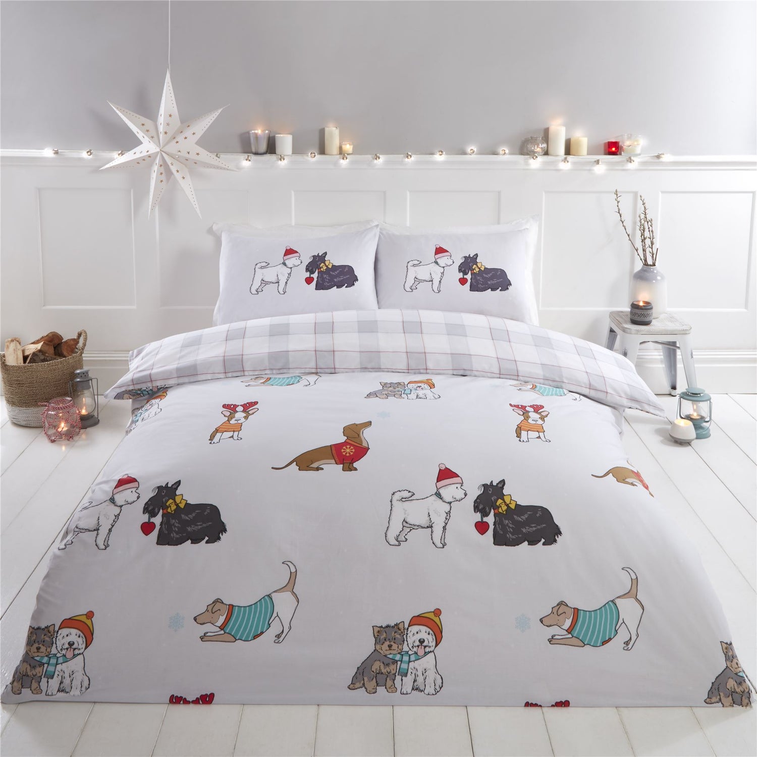 This adorable design features some of the most popular dog breeds. All dressed up for the festive period in their cutesy sweaters, bobble hats and scarves. With a modern check reverse, this design is perfect all year round.