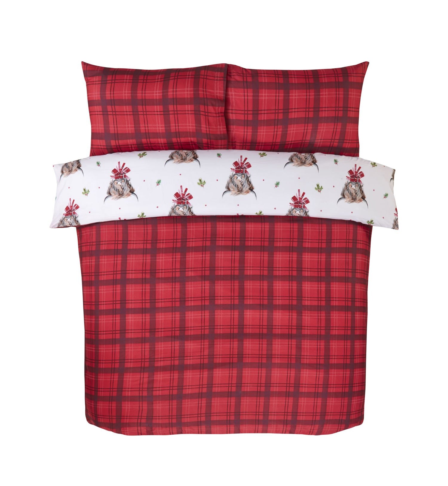 Bring a touch of rustic charm to your bedroom with this delightful Fergus duvet cover. Featuring a playful pattern of adorable Highland cows adorned with festive red bows, this bedding set adds a cozy and whimsical touch to your space. The pillowcases mirror the cow pattern, completing the cohesive and playful aesthetic of this bedding set.