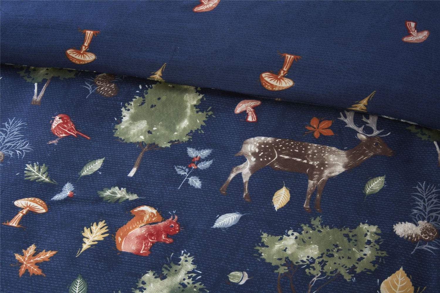 Bring the magic of the season into your bedroom with the Autumn Forest Christmas Duvet Set. Showcasing a charming festive design of woodland animals on a rich navy background, this set is perfect for creating a cozy holiday atmosphere. Fully reversible, it offers two seasonal looks in one, allowing you to easily switch up your decor. Crafted from soft microfibre fabric, this duvet set is not only comfortable but also non-iron and easy to care for, making it a practical yet stylish addition to your home this Christmas season.