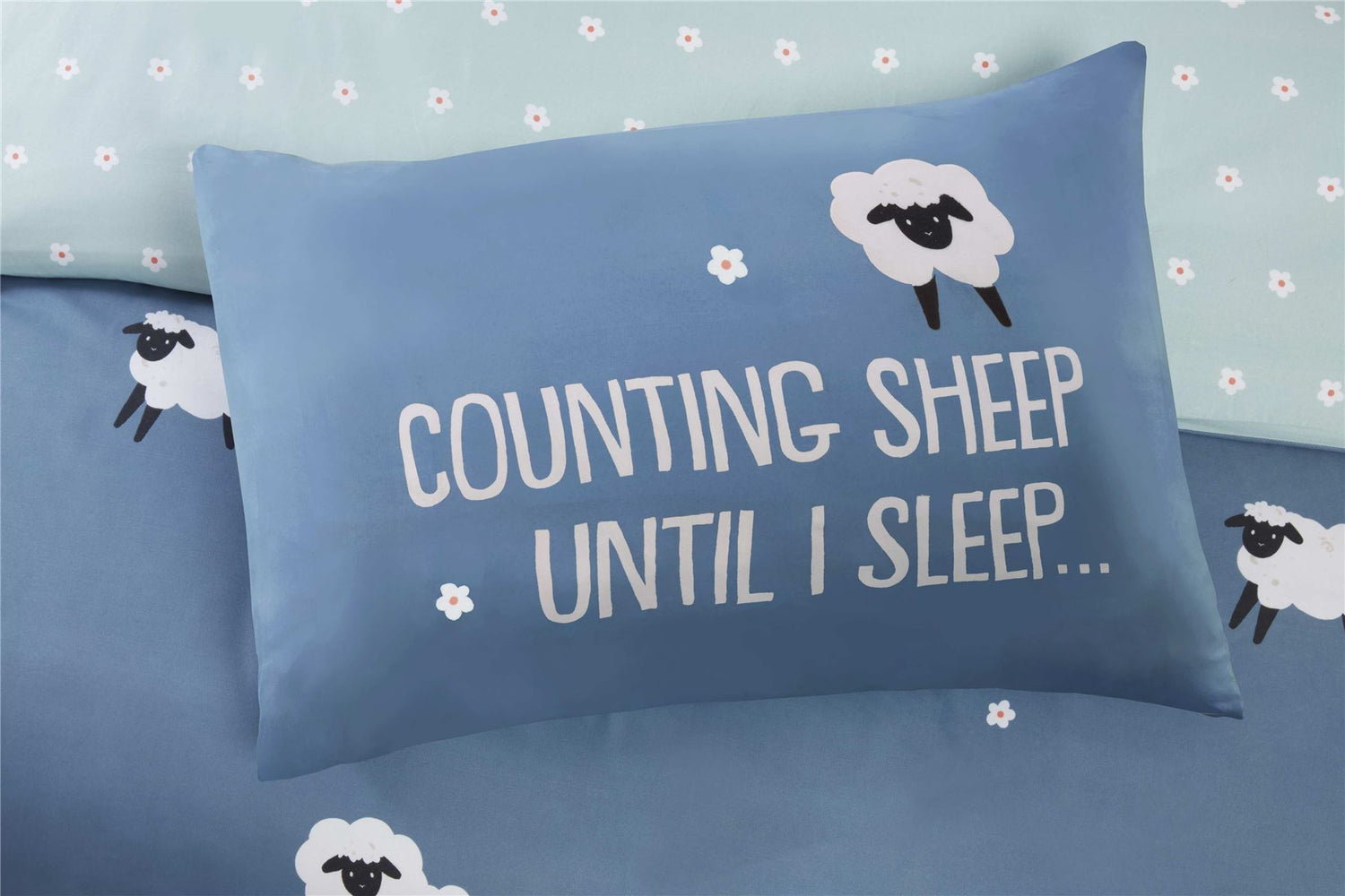 Our new and exclusive Counting Sheep design will add quirky styling to your bedroom, featuring fluffy sheep printed onto a blush pink base or blue base and the slogan 'Counting sheep until I sleep' onto each pillowcase . Fully reversible with a ditsy daisy reverse. Perfect for a good night's sleep our So Soft printed bedding range is cosy and gentle against your skin. Made with 180 thread count microfibre making it non-iron, durable and machine washable.