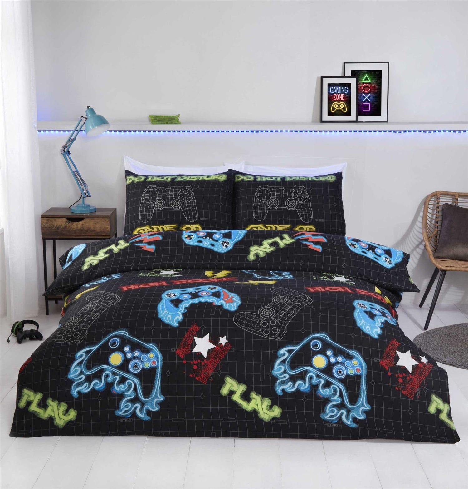 Elevate your gaming experience to the next level with our Gamer Duvet Set featuring video game theme. This set includes matching pillow cases, perfect for any gaming enthusiast looking to add a touch of fun to their bedroom decor.