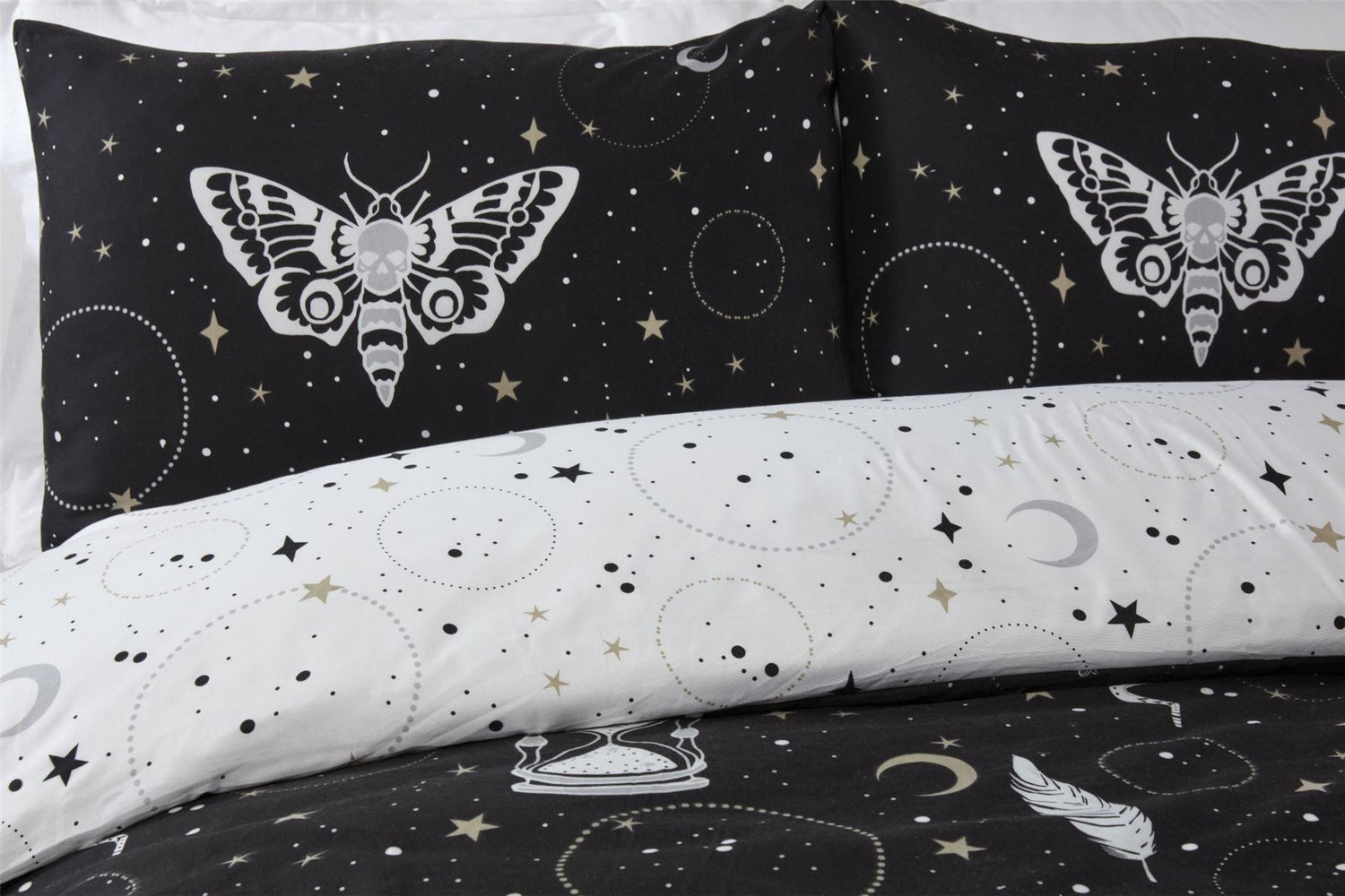 Introducing our bewitching Halloween Gothic Bedding Set, where enchantment and darkness intertwine to create an ambiance that is both mysterious and captivating. This unique bedding ensemble is designed to transport you to a realm where the macabre meets the magical, casting an alluring spell upon your bedroom decor. At the heart of this hauntingly beautiful set is the mesmerizing Hamsa Hand along with a collection of eerie elements that evoke the spirit of Halloween. Fully reversible.