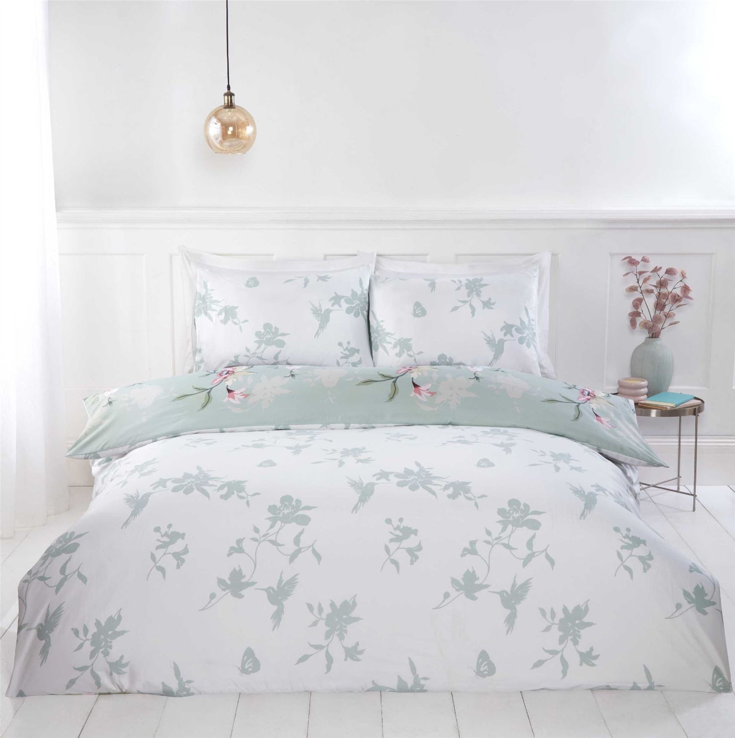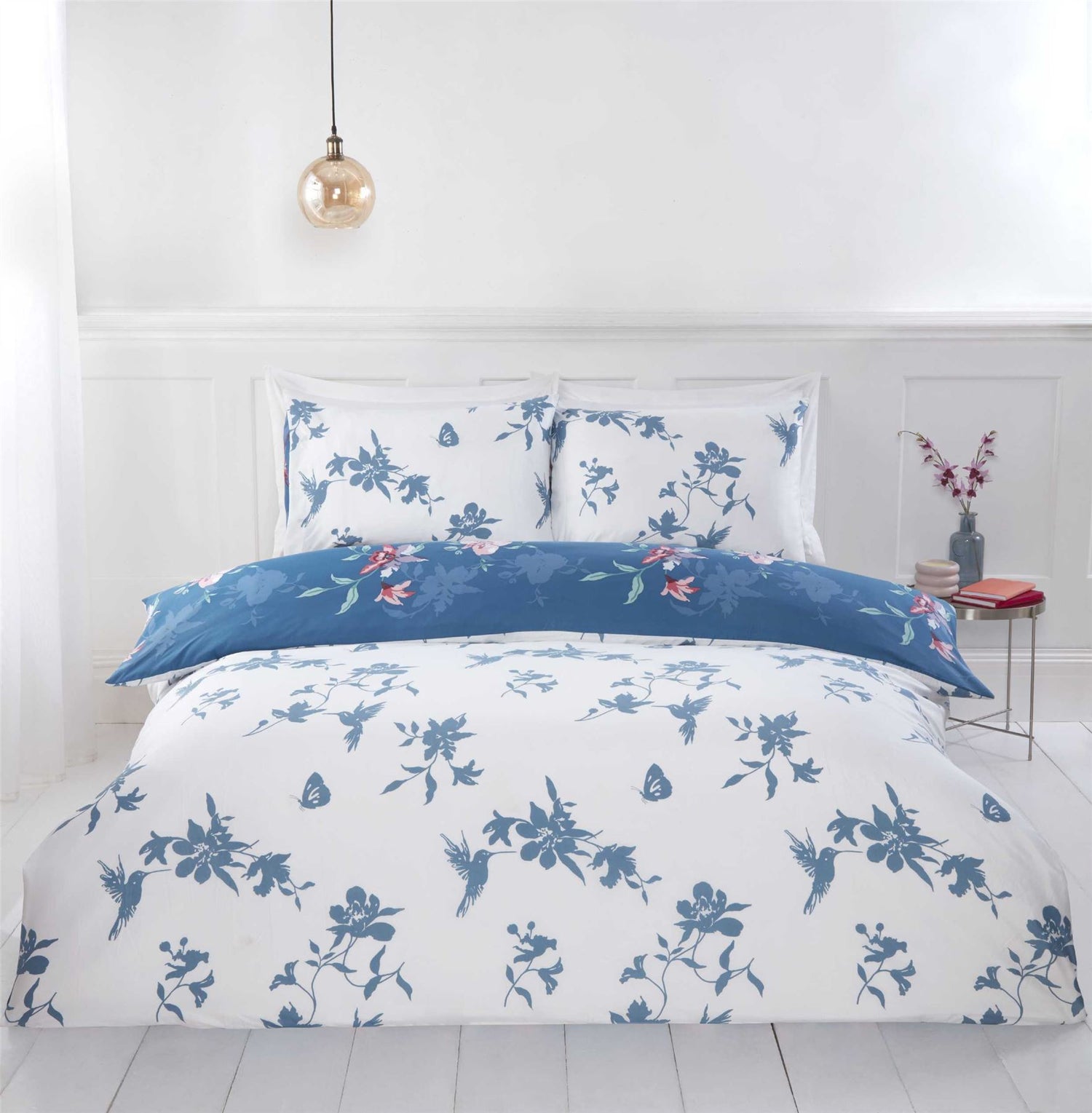 Indulge in the luxurious comfort and exquisite style of our Hummingbirds Reversible Duvet set with pillowcase set. This stunning bedding ensemble features a beautiful blue or green floral design that adds a touch of elegance to any bedroom decor. The soft, high-quality fabric ensures a restful night's sleep, while the reversible duvet allows for versatile styling options. The intricate hummingbird pattern adds a whimsical and charming touch to the overall aesthetic, making it a truly unique and eye-catching addition to your bedroom. The set includes a duvet cover and matching pillowcases, all adorned with the same stunning floral and hummingbird design.