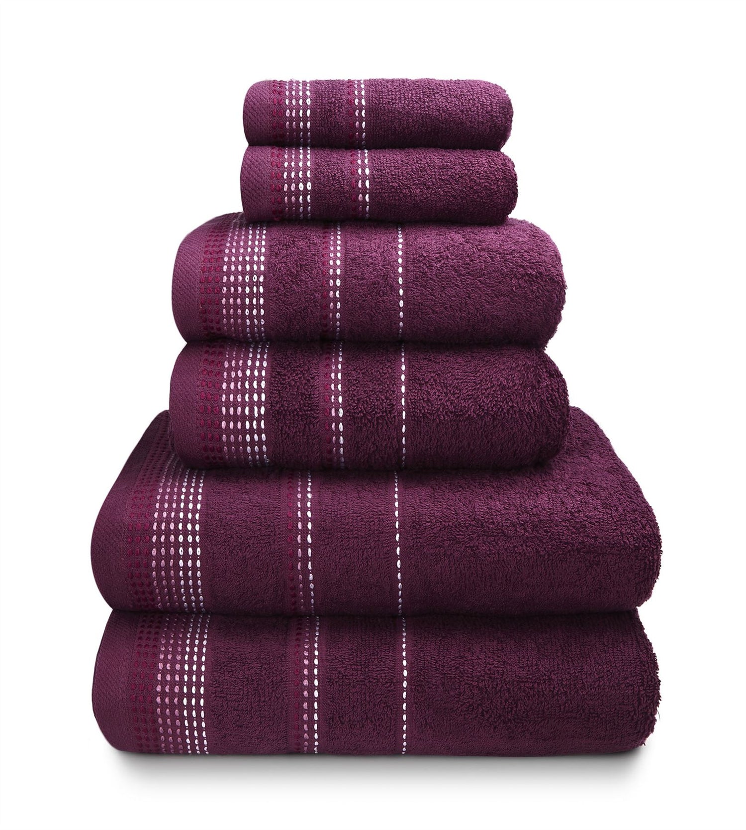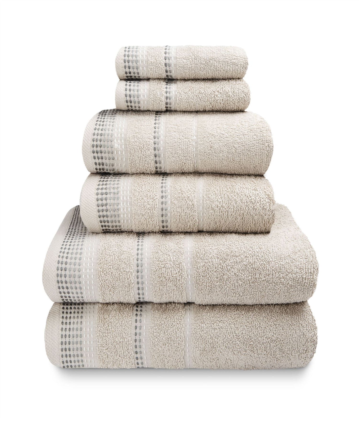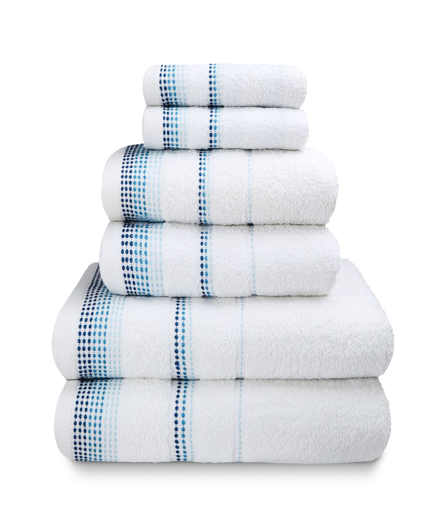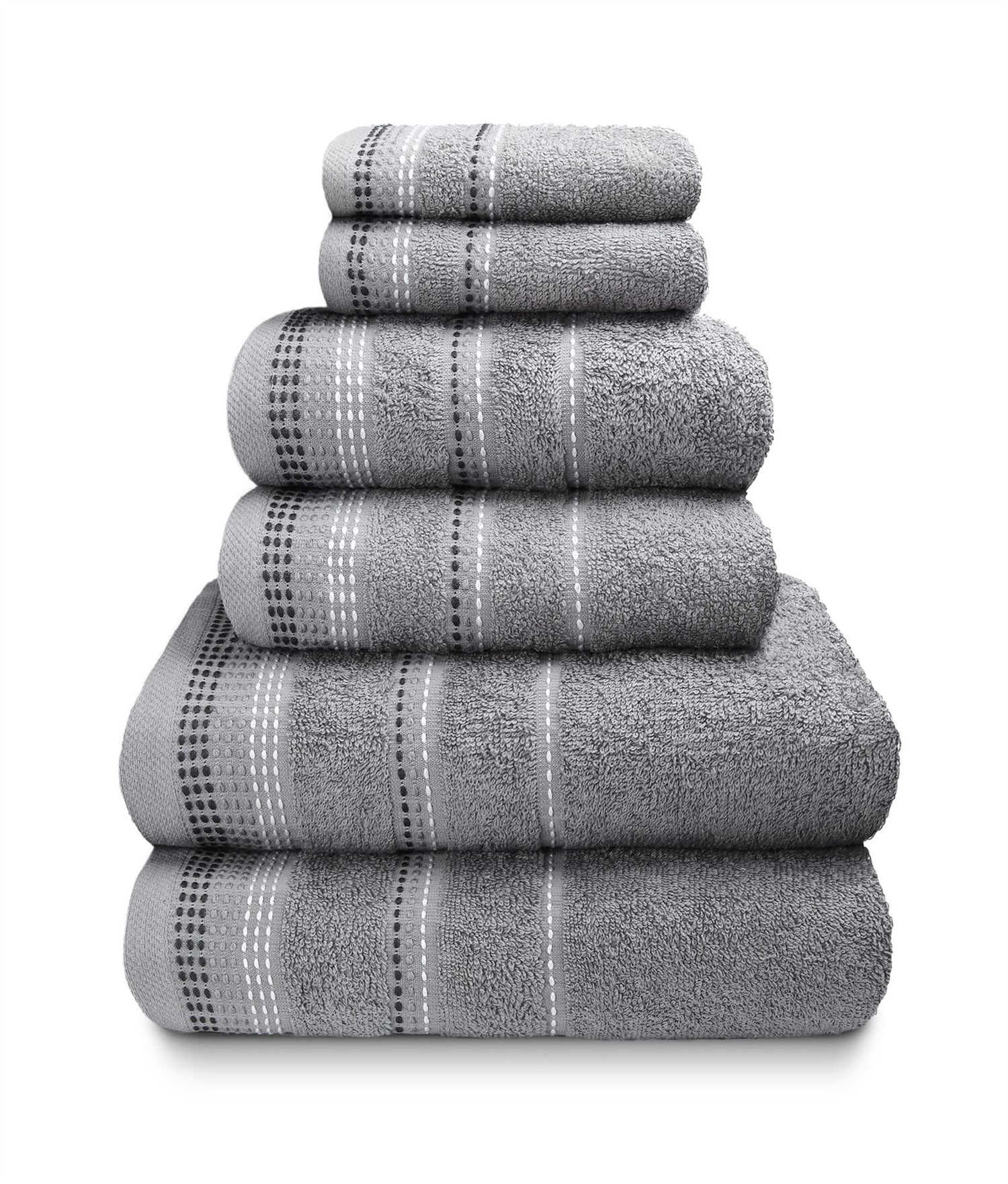 - 6-PC Bale: 2x face cloths (30x30cm), 2x hand towels (50x80cm), 2x bath towels (70x120cm)