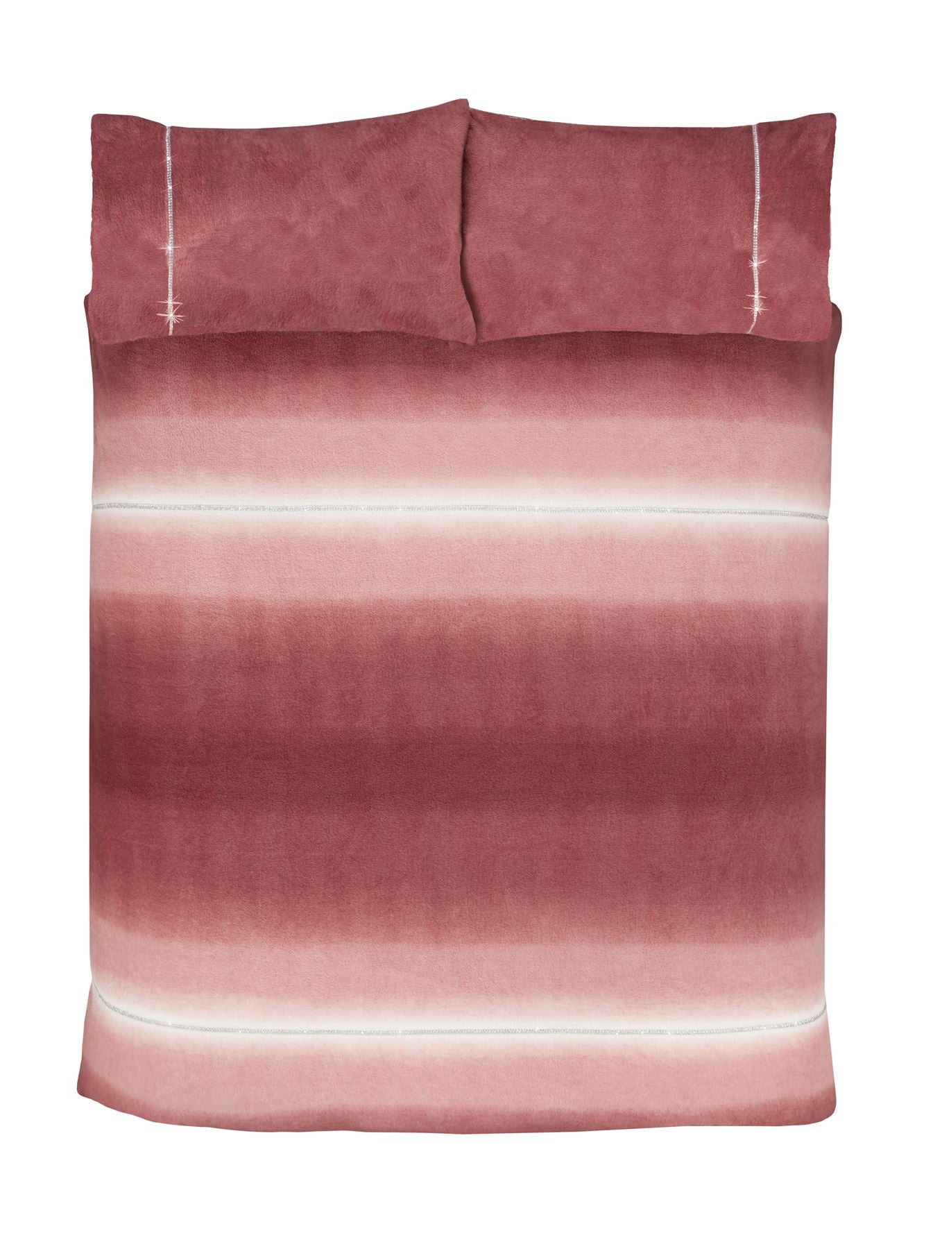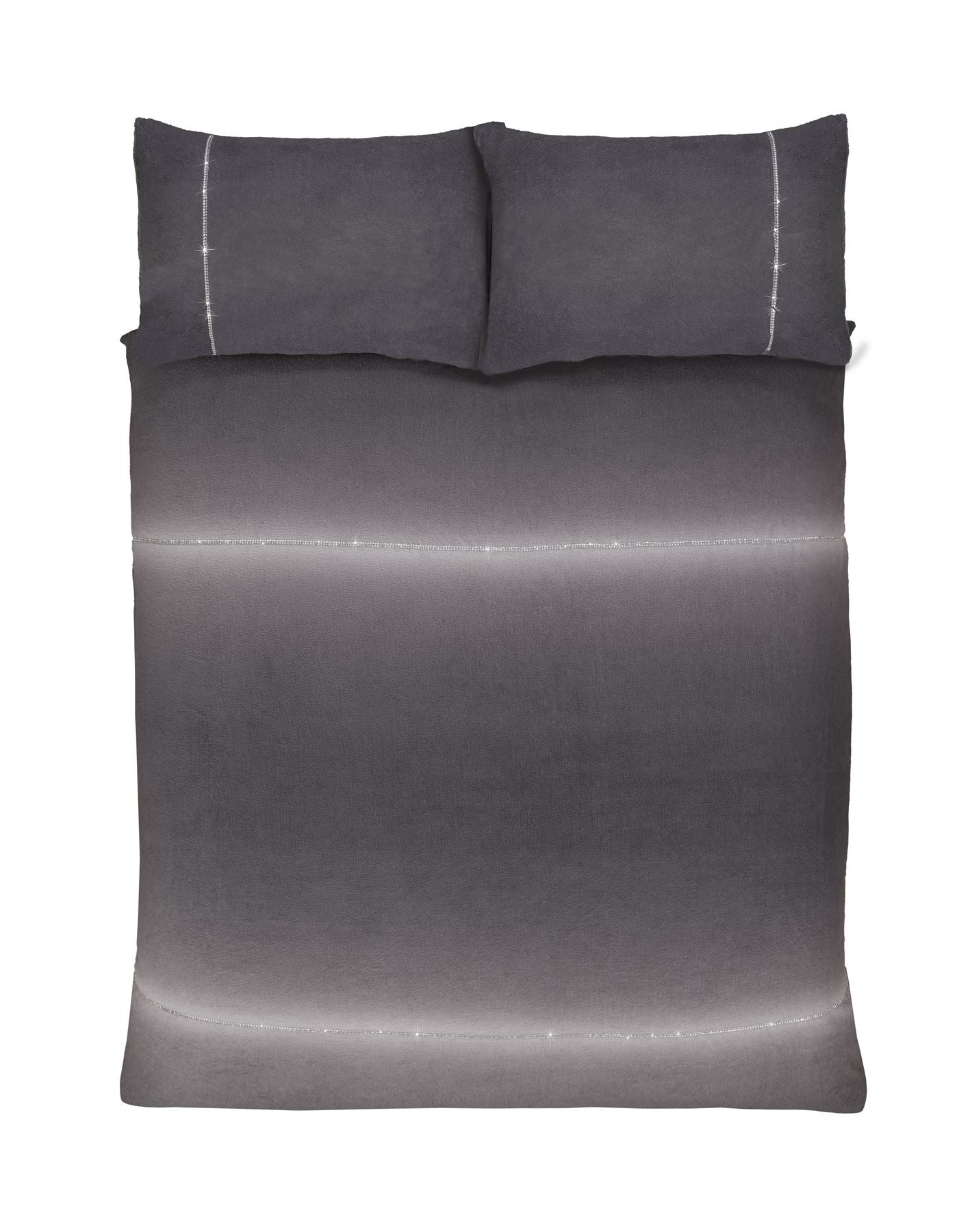 Wrap up warm with this amazing teddy fleece duvet cover bedding set. This snuggle teddy fleece duvet cover will make your bedroom feel relaxed and cosy creating warmth and comfort for the perfect nights sleep. Featuring an ombre stripe design with diamantes across the cover and down each pillowcase, perfect for a winter hideaway in bed.