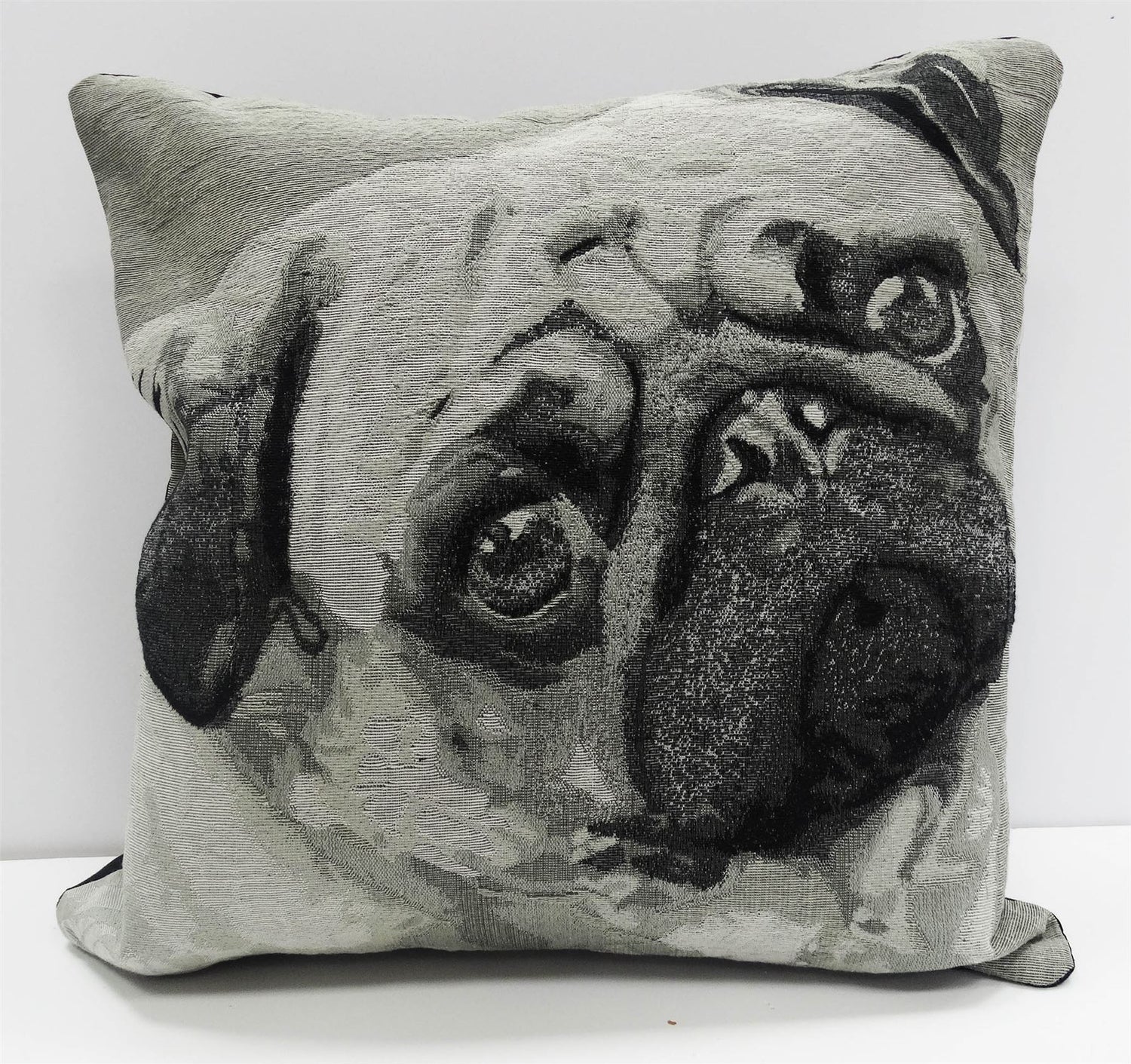 This cool jaquard woven pug cushion is full of character. Add some charm and character to your living space with this fun accent cushion.