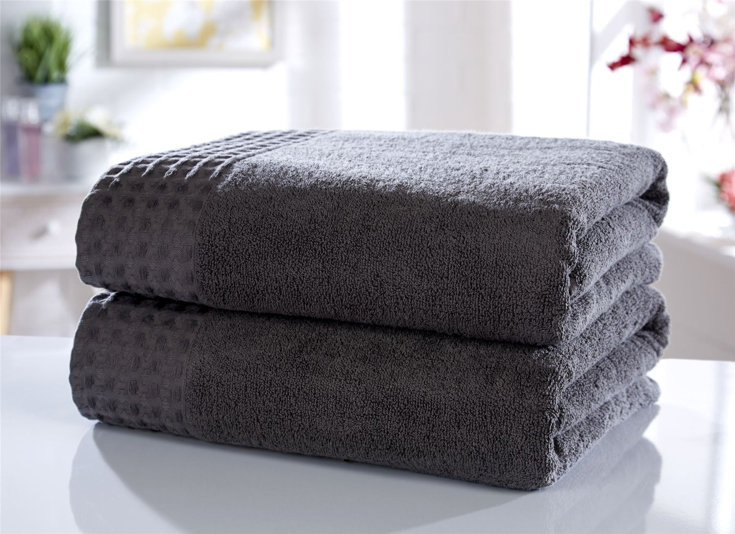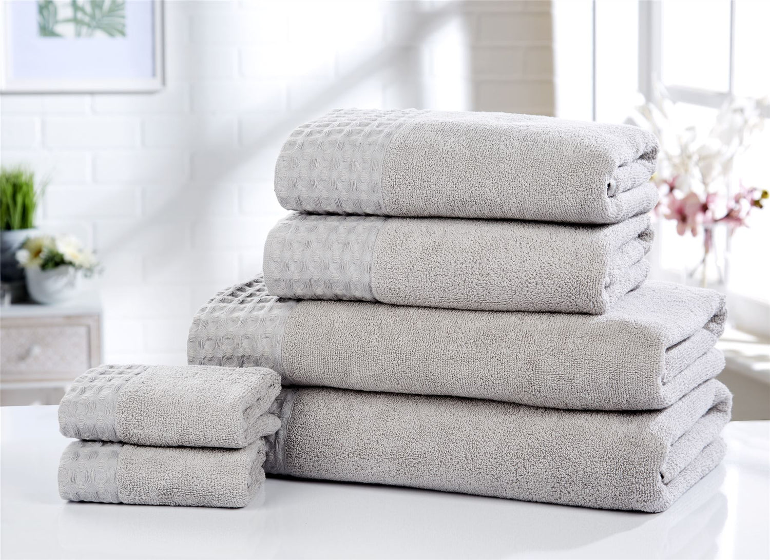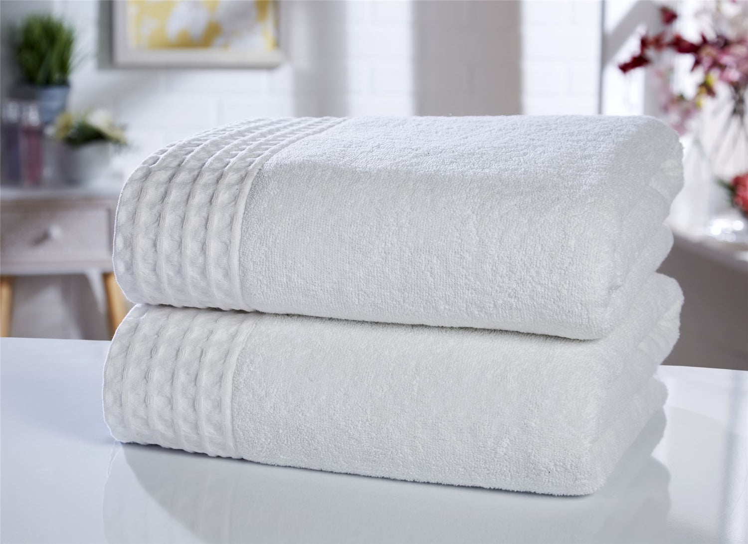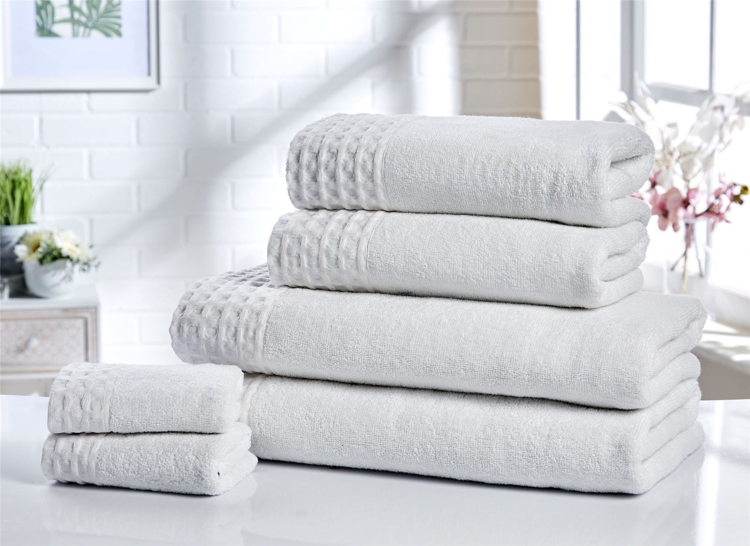 Feel fresh and revitalised after each wash with the retreat range of towels featuring a hotel style waffle trim and crafted in 100% luxury pure cotton.
