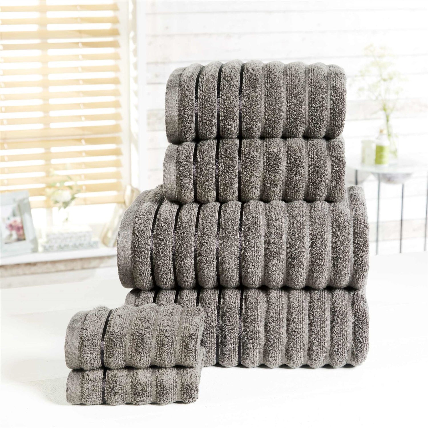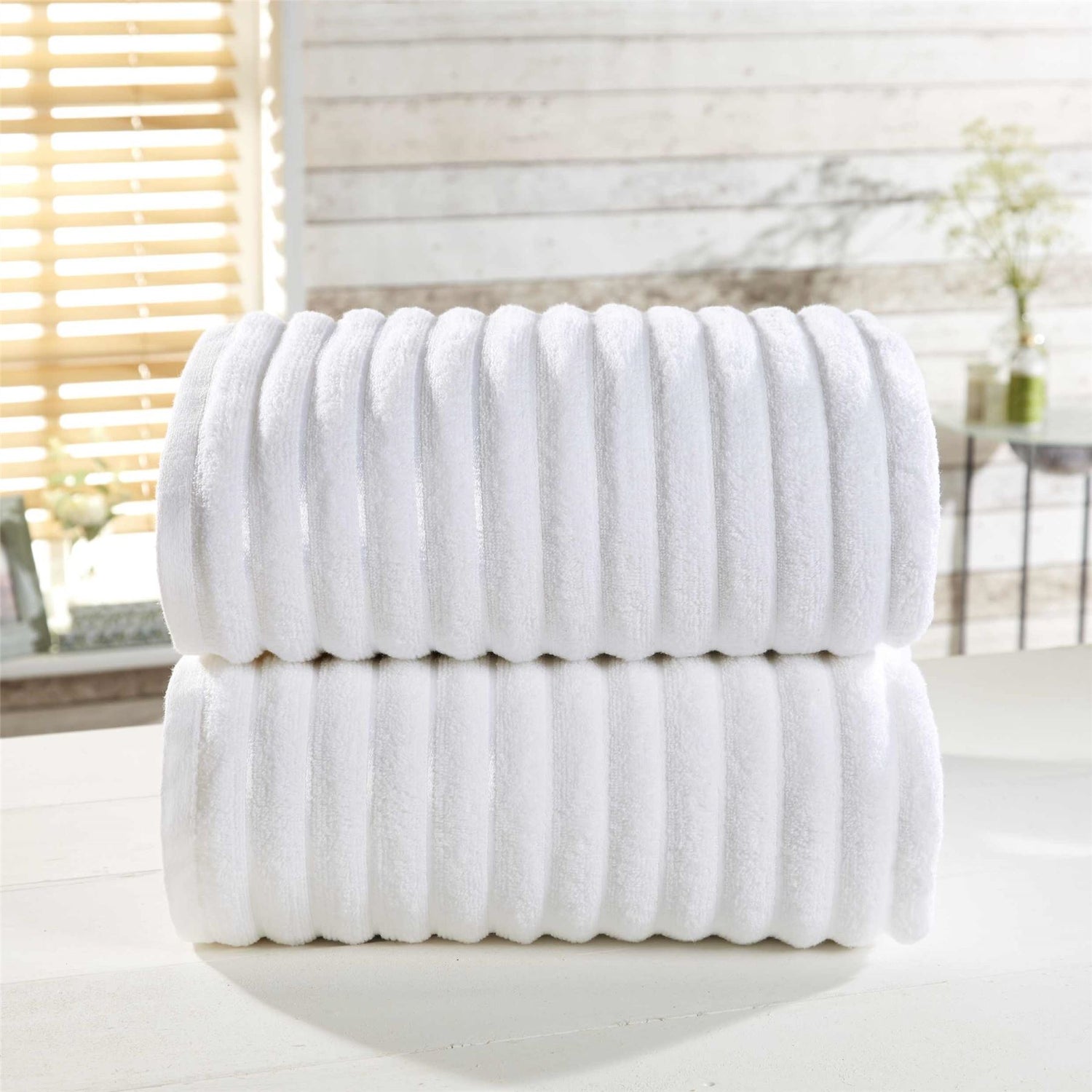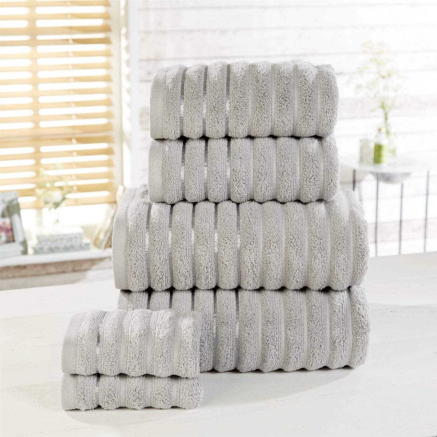 Luxuriously plush ribbed bathroom towels featuring a stripe weave. There are borders of silky sheen effect to add a subtle detail yet maintaining its simplicity. Each towel is crafted in 100% luxury pure cotton perfect for wrapping up in but equally, fast results when drying off after stepping out of a shower or relaxing soak.