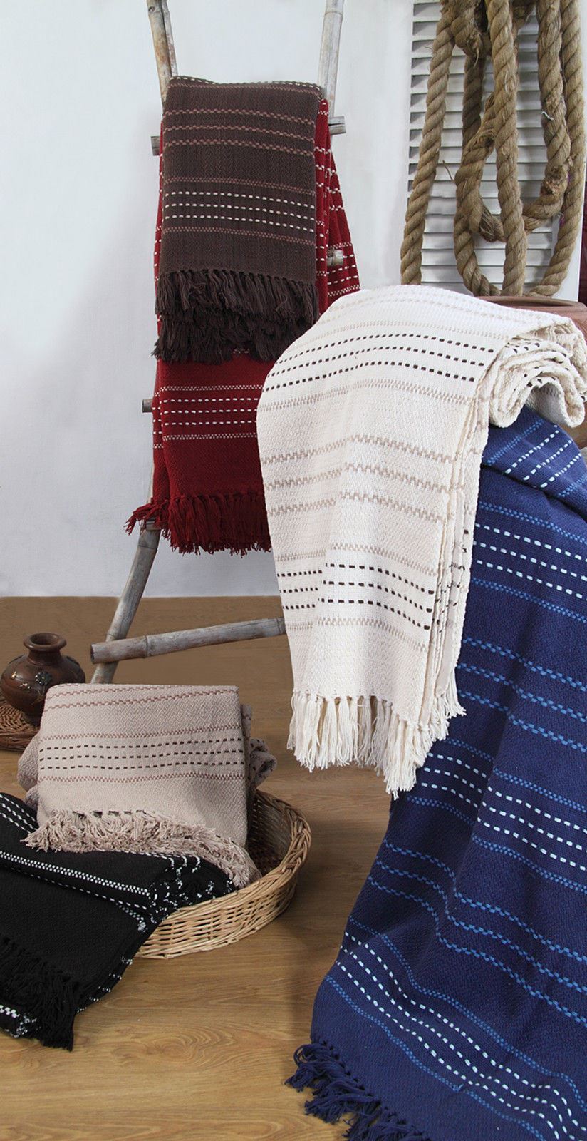 Our stich stripe throw is warm cotton with a striped woven pattern and a tasselled edge. Ideal for sofas, chairs and beds.