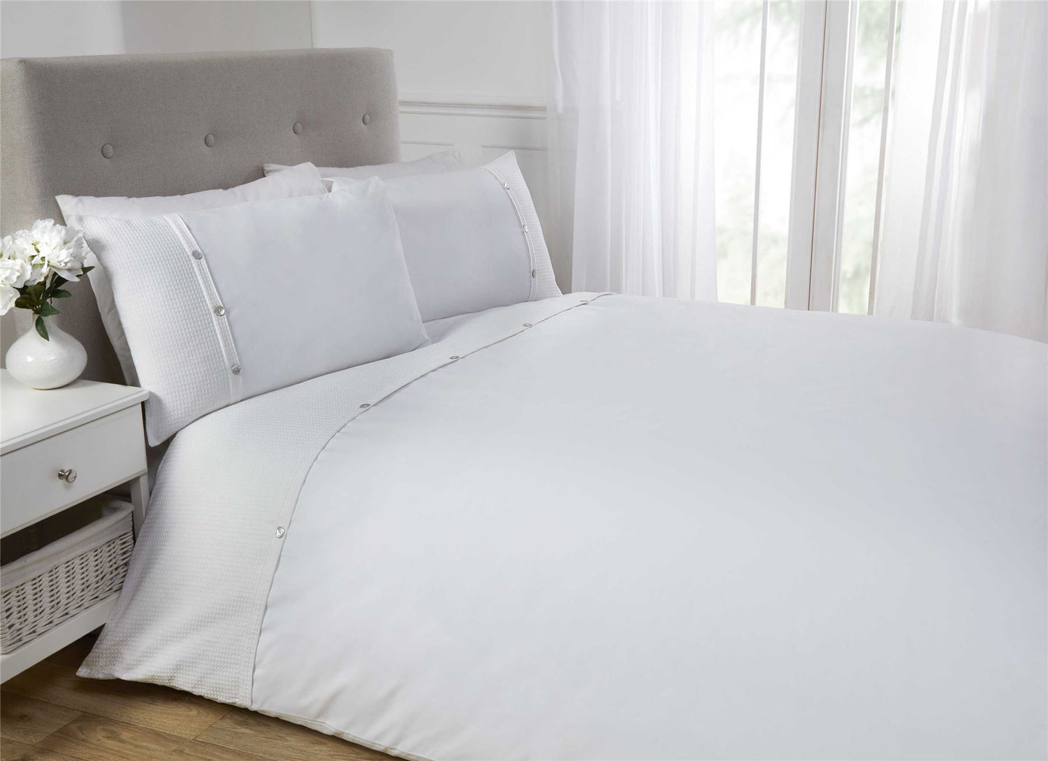 Luxurious 5th Avenue Duvet Set featuring a clean top cuff waffle design with pearl effect buttons for sophisticated bedroom décor