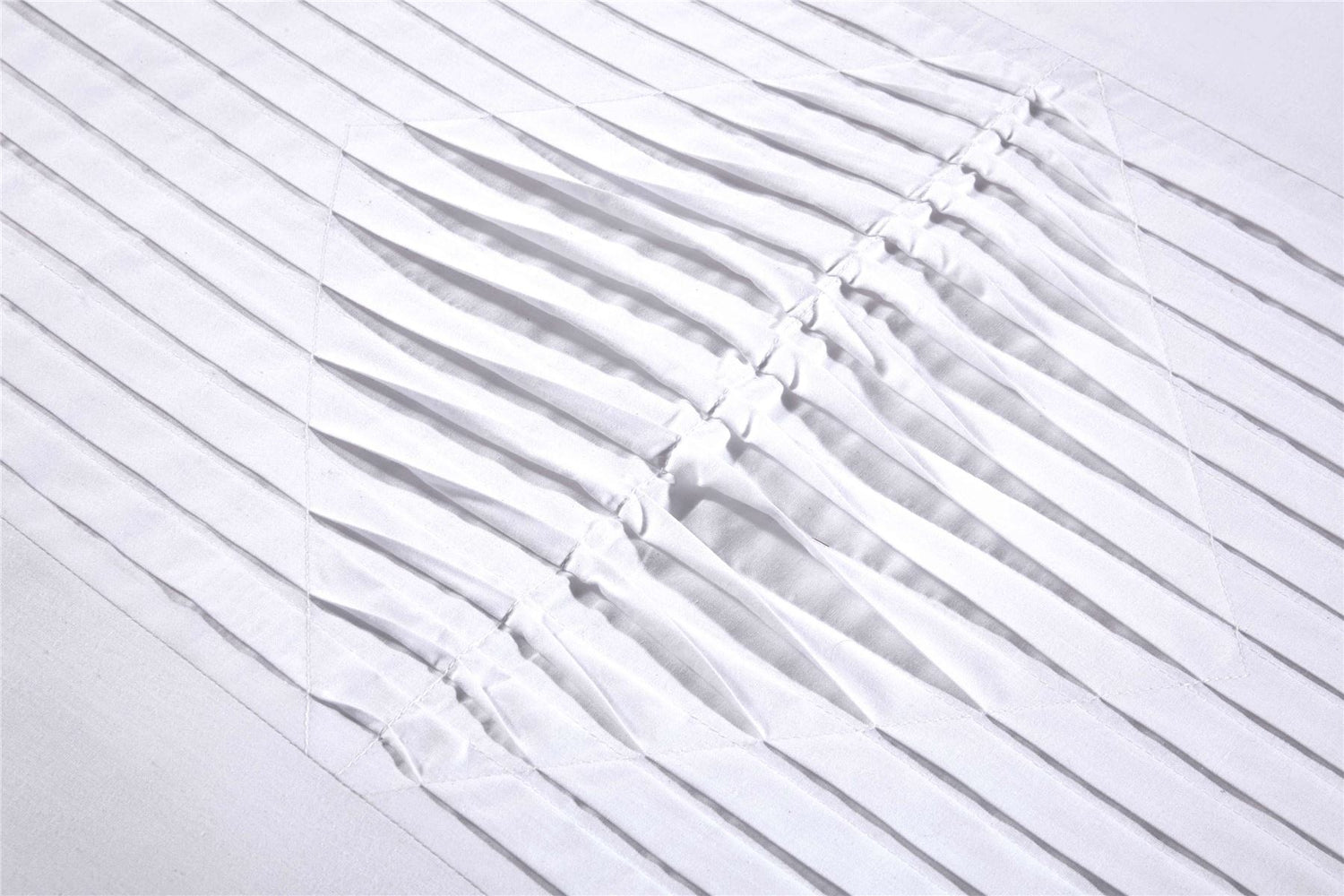 A beautiful minamilistic design with a pinktuck band across the top cuff and pintuck on the pillowcase edges.