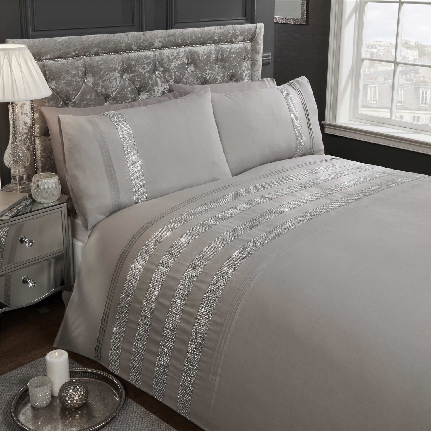 The bedding set has dazzling diamante and pin tucked bands, exquisitely designed to add a touch of glitz and glam to your bedroom.