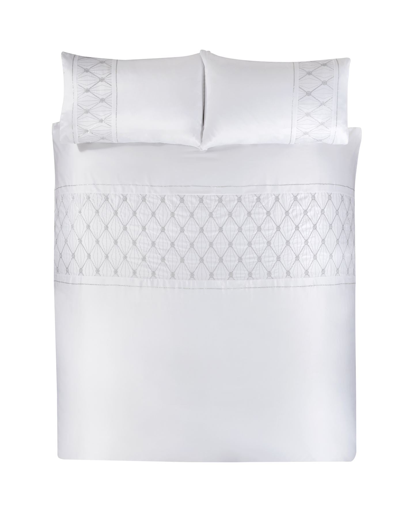 This glamourous monaco duvet cover have been beautifully made from an opulent satin and embellished with a geometric sequin sparkle trim across the duvet and down each pillowcase, the giving a really designer look.