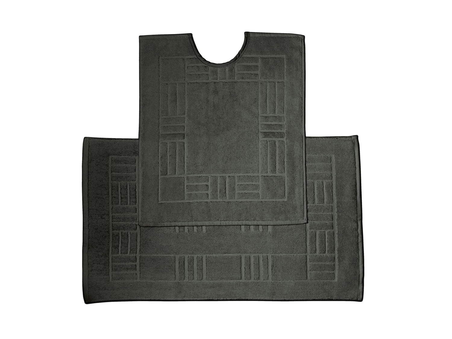 Luxurious black pedestal mat made from 100% combed 600gsm cotton with a thick, lofty pile for superior absorbency and durability