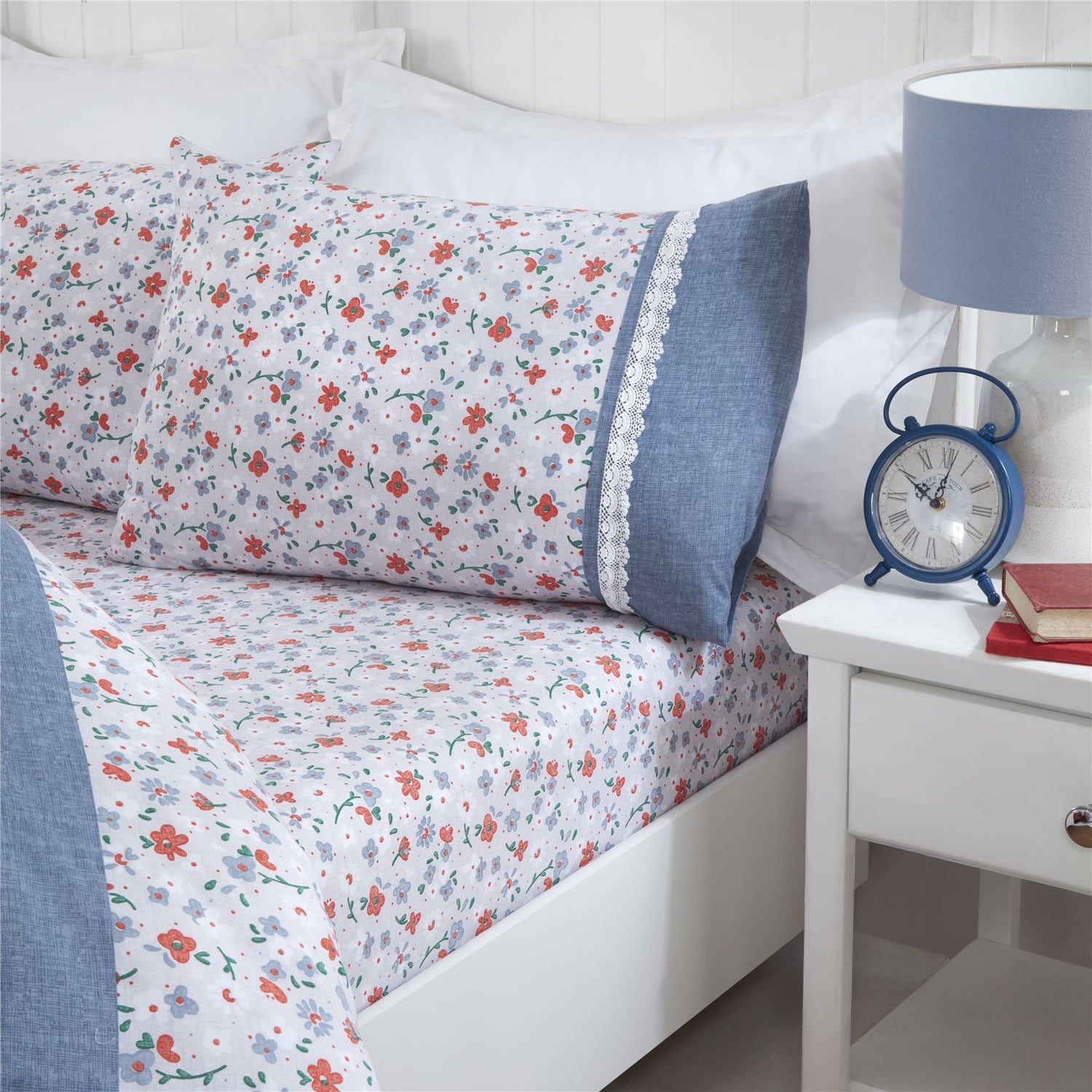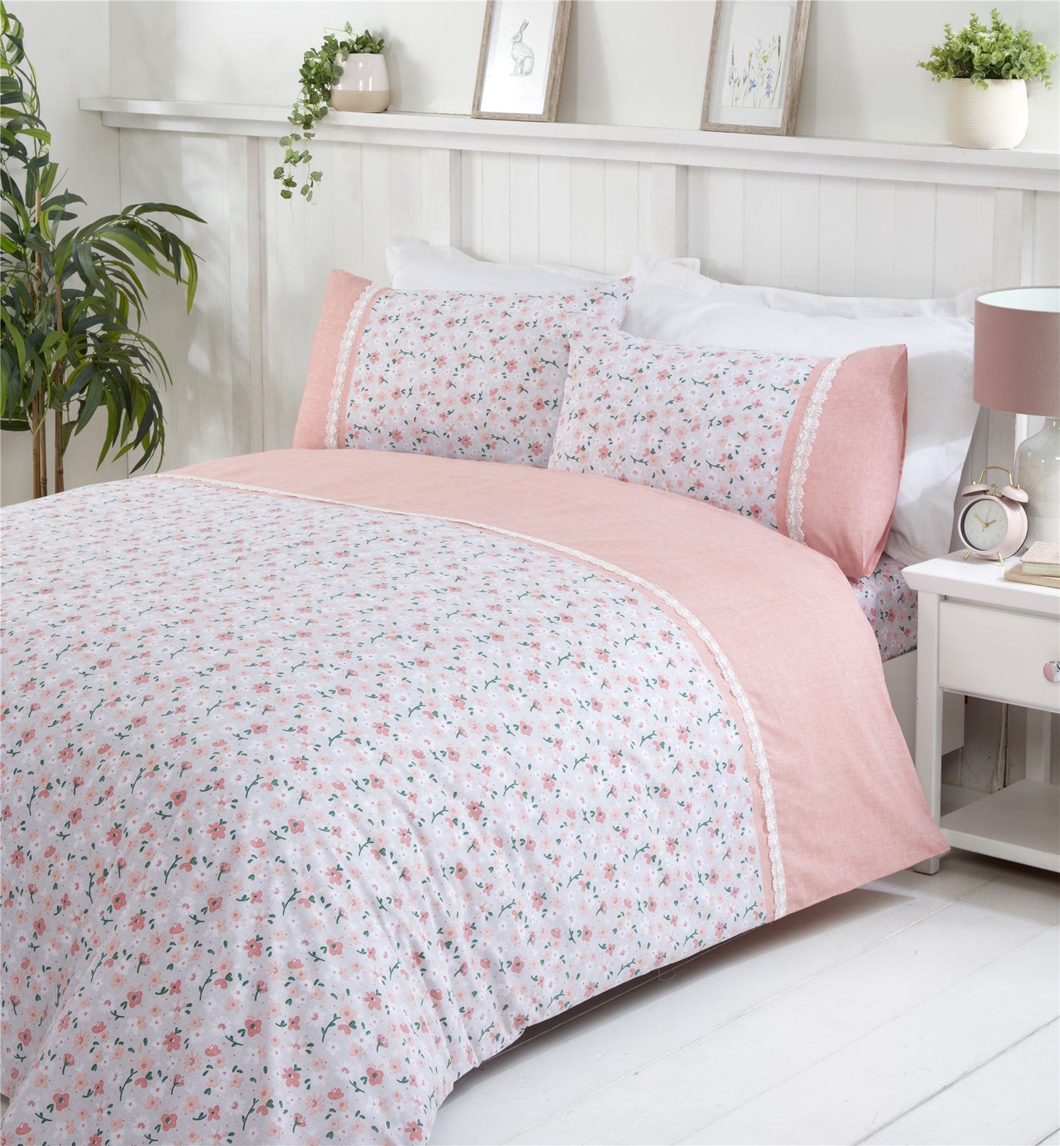 This traditional, pretty design features delicate springtime flowers and vintage lace to create a classic duvet cover set. This bedding is great for adding a fresh feel to your bedroom.