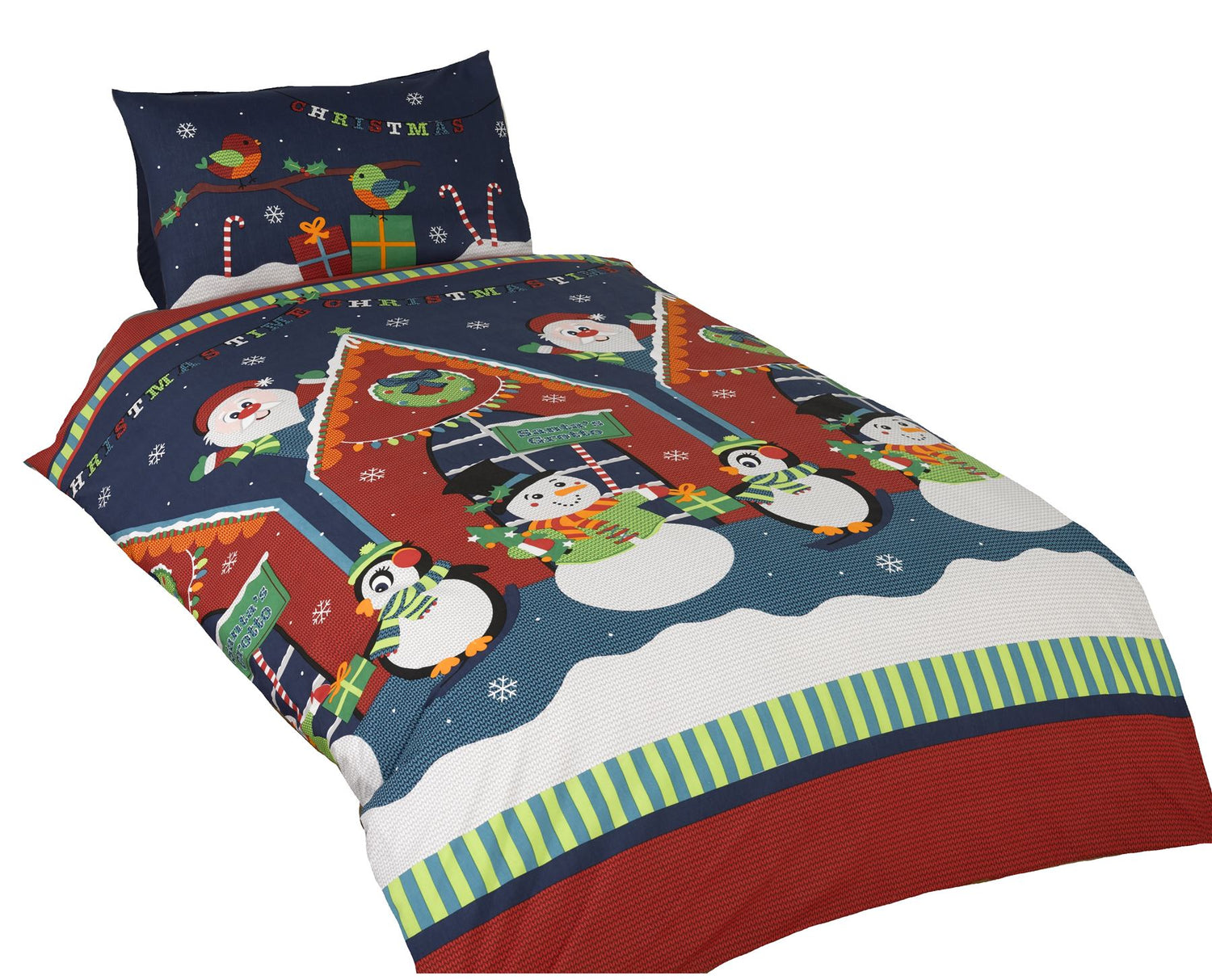 This practical and easy-care bedding collection has been created by talented British designers. Using the very latest trends, colours and manufacturing technologies, this duvet set provides utmost style and durability for any home. Featuring santa, snowmen and penguins.