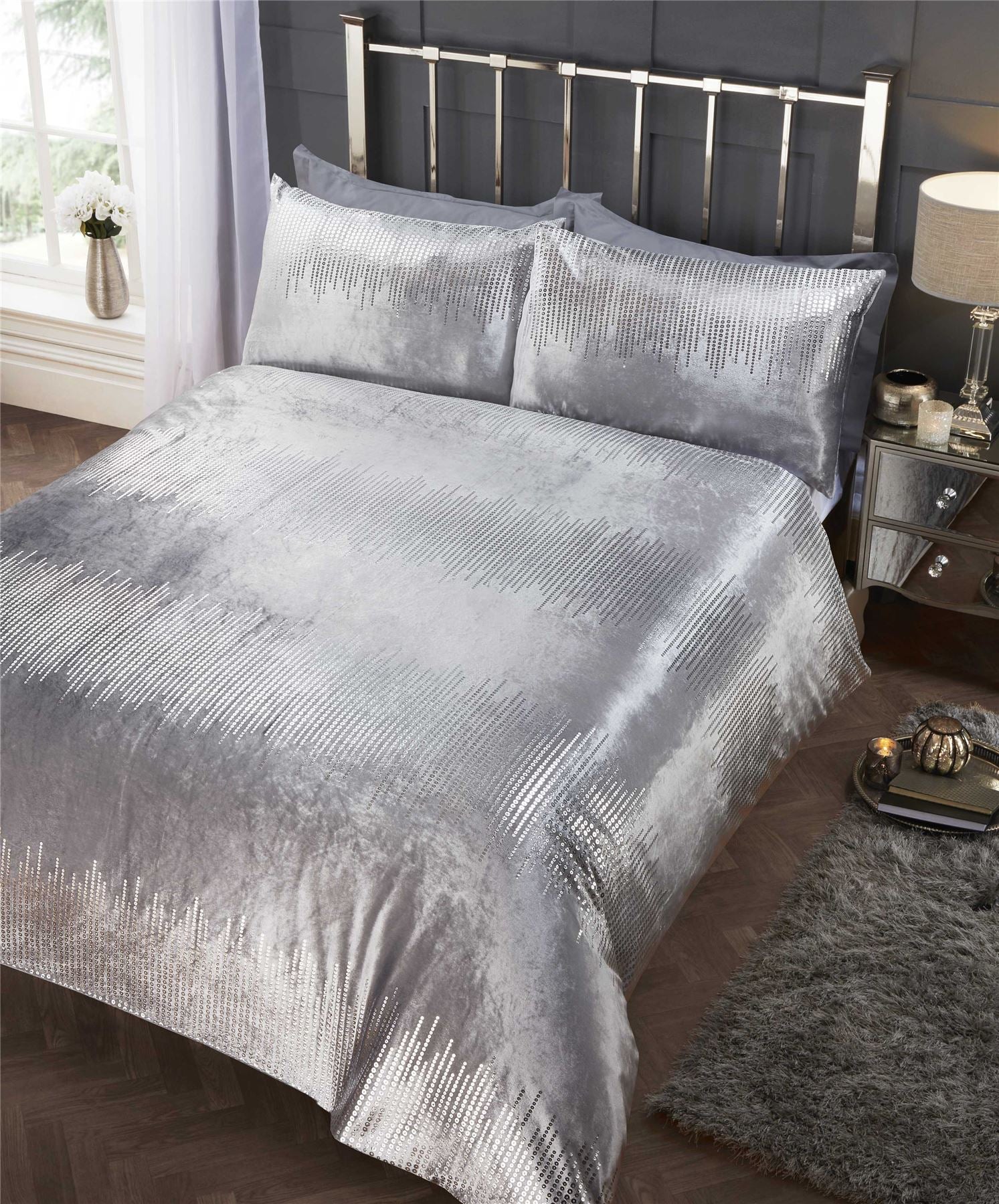 Sparkle with our tiffany duvet set. Embellished with a foil printed sequin effect on a crushed velvet material. Brings a touch of glamour to any bedroom.